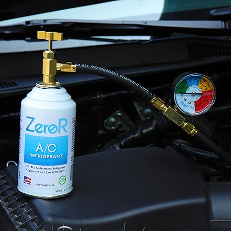 ZeroR® AC Refrigerant | R134a Replacement | 2 6oz Cans for AC Recharging + 24″ HD Can Tap Gauge